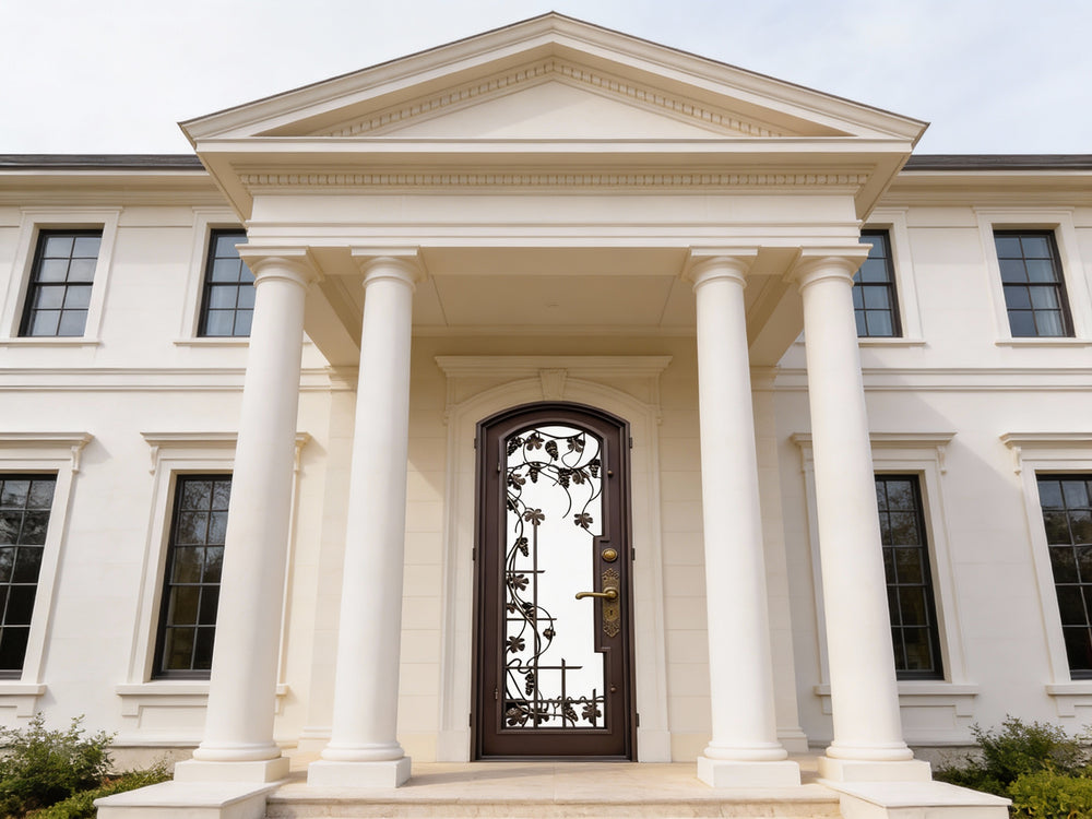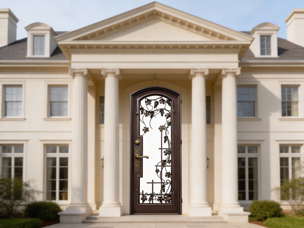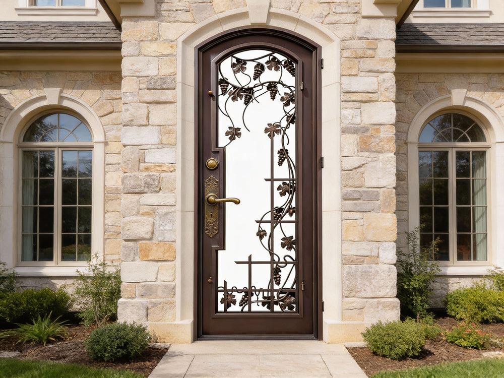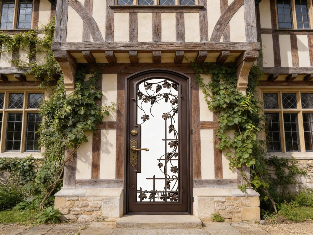 Celebrate classic charm with Model IWD1016 handcrafted iron door that brings vineyard-inspired elegance to your home’s entrance. Featuring lush grapevine scrolls with winding vines, sculpted leaves, and grape clusters, this design blends organic artistry with structural precision. Its square top profile creates a bold architectural frame, while every forged detail speaks to old-world craftsmanship. Perfect for heritage homes, garden retreats, or any build that calls for warmth and character.