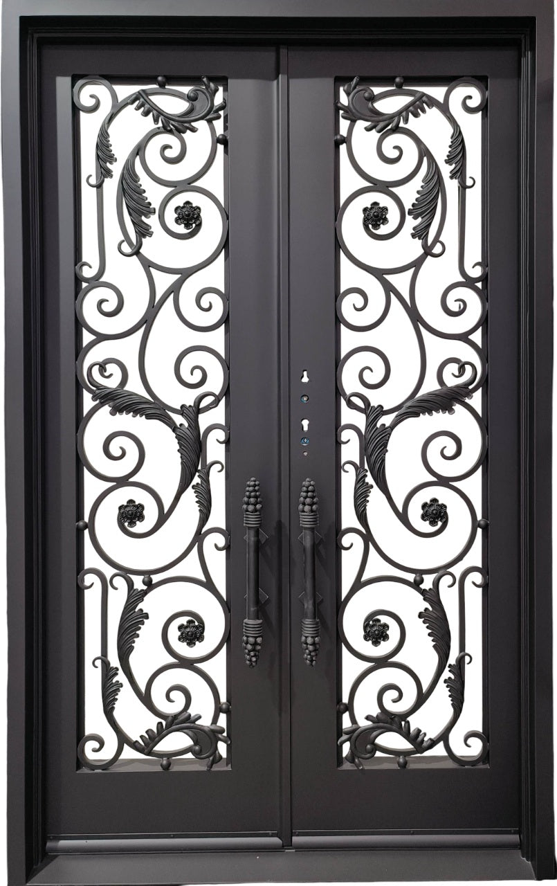 - Decorative Scroll-Work: Standard iron entry doors come with decorative 5/8" square solid steel scrollwork.