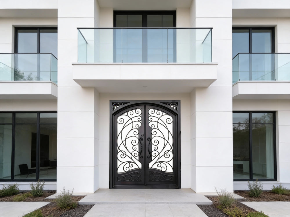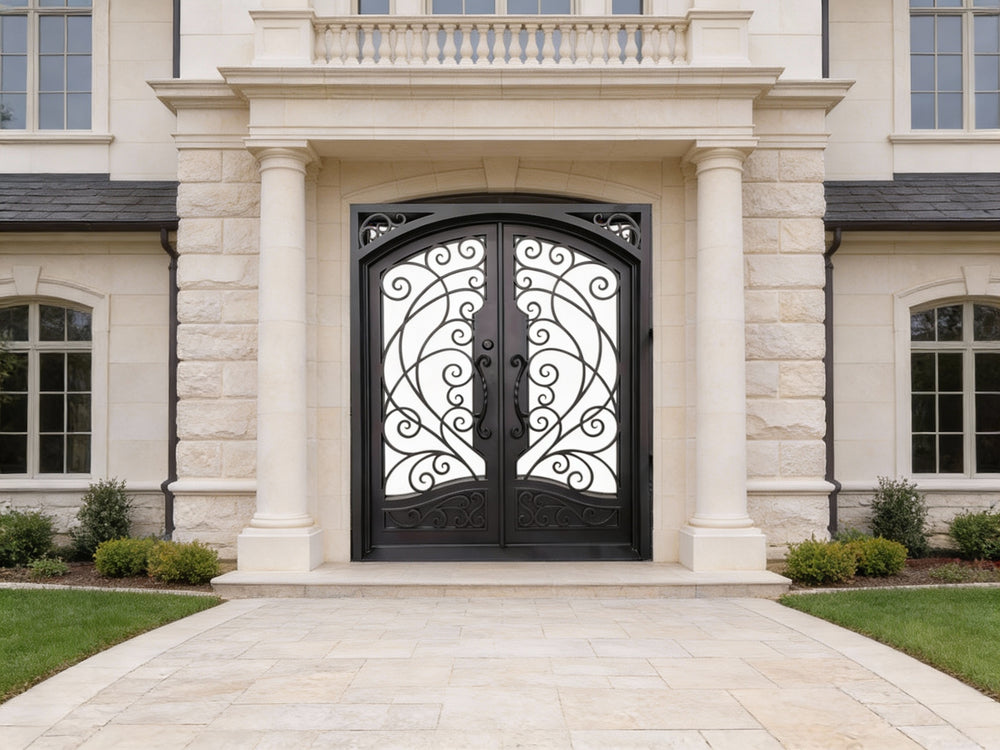 Step into timeless elegance with Model IWD1007 — a square-top wrought iron door featuring ornamental scroll detailing and a structured kickplate base. Ideal for heritage homes and new builds alike, this handcrafted entryway balances form and function with corrosion-resistant powder coating, foam-insulated frame, and customizable specs. Whether enhancing curb appeal or reinforcing security, the IWD 1007 offers design-forward impact built to perform across seasons.