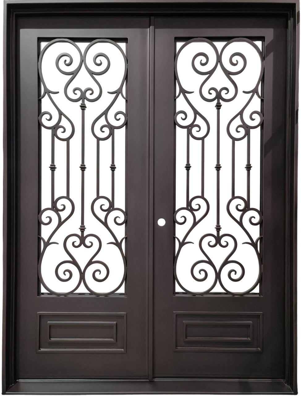 - Decorative Scroll-Work: Standard iron entry doors come with decorative 5/8" square solid steel scrollwork.