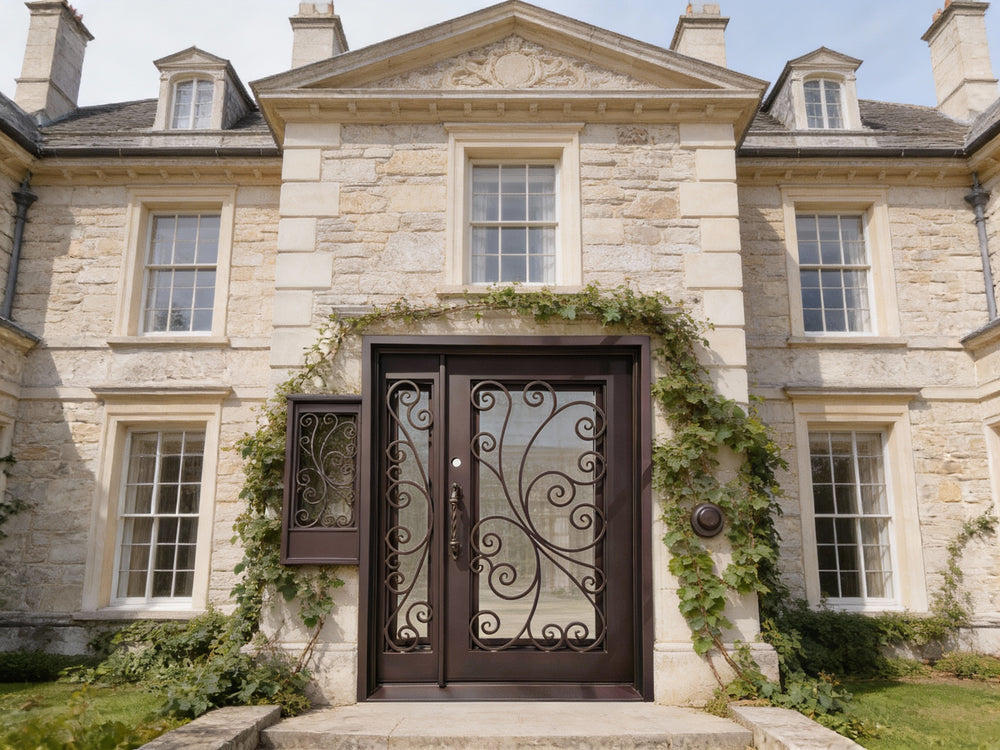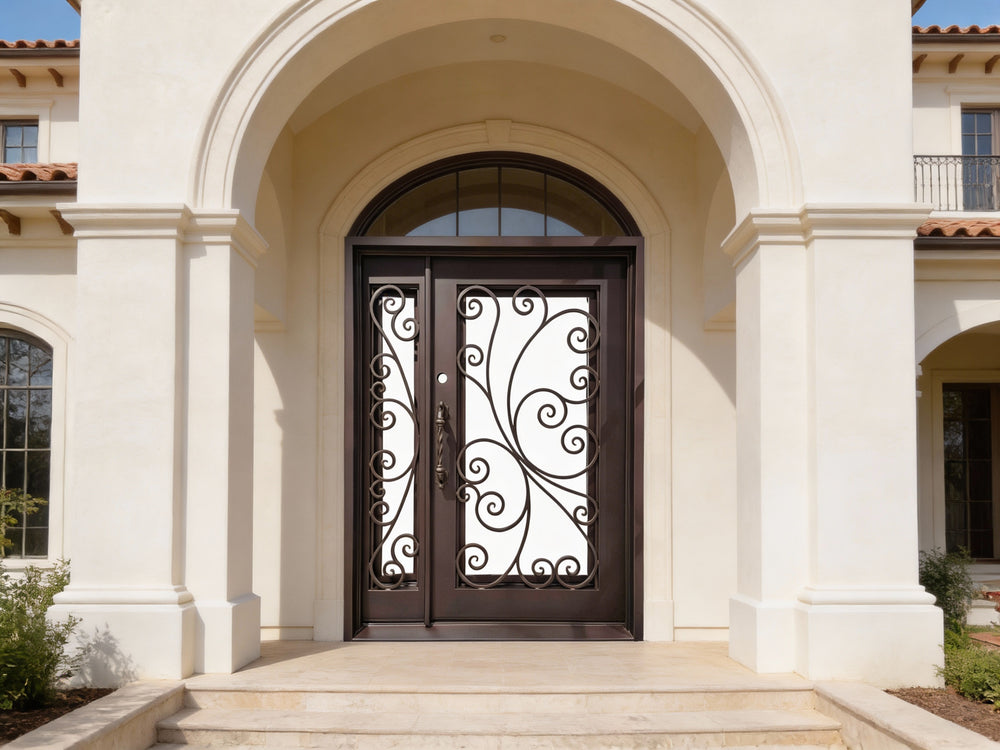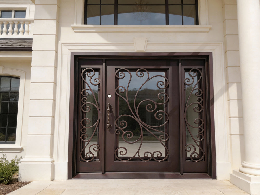 Model IWD 1008 is a handcrafted wrought iron double door featuring symmetrical scrollwork and a square-top frame, built for style and durability. Finished in matte black and fully customizable, this door adds curb appeal and architectural integrity to custom homes, upscale remodels, and traditional exteriors. Engineered with insulated structure and weather-ready finishing, it offers elegance and performance in one refined package.