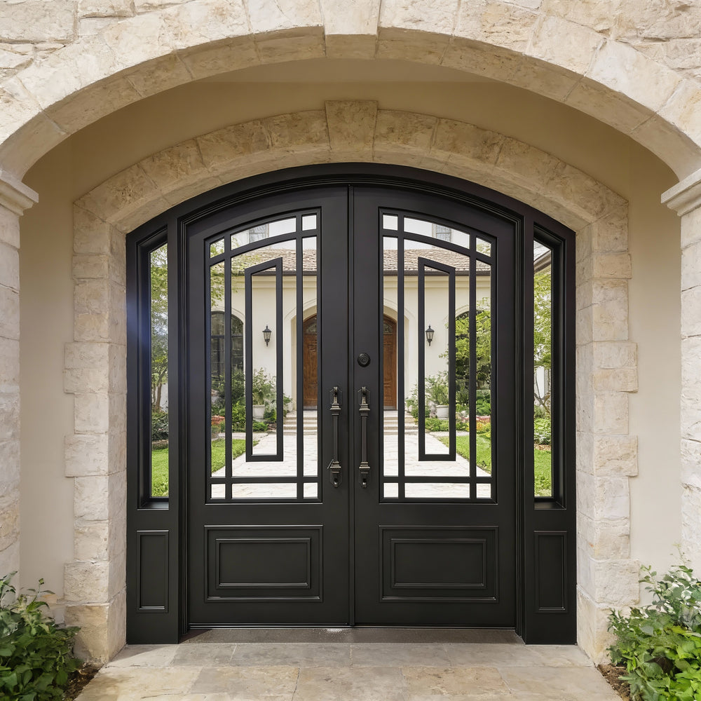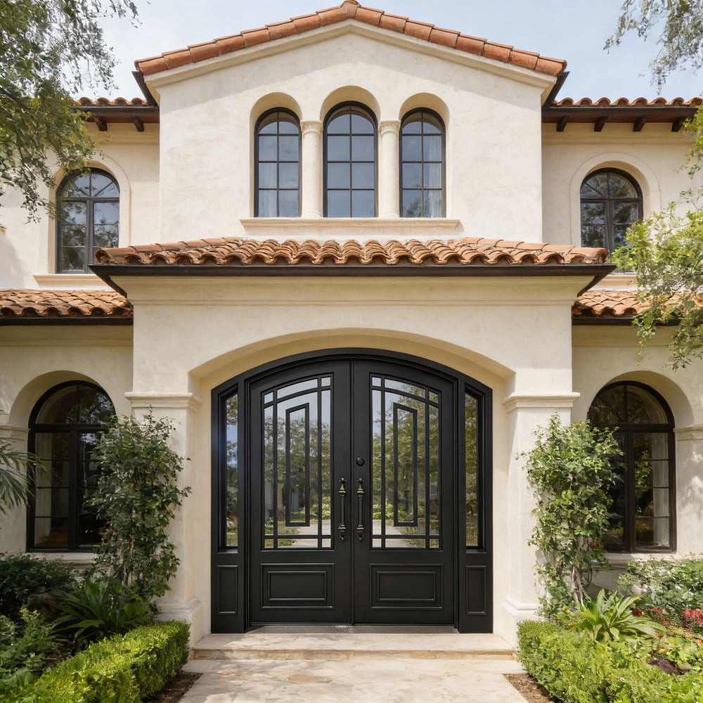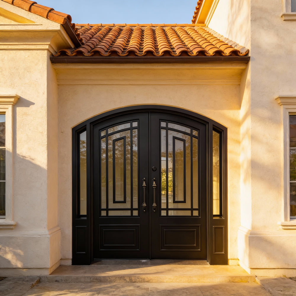 Model IWD990 presents a square-top wrought iron double door featuring vine-inspired scroll panels and centered circular medallions per leaf. Powder-coated for durability and crafted for symmetry, this entryway combines ornamental richness with modern resilience. Ideal for estate homes, heritage renovations, and architectural projects prioritizing detail and curb appeal.
