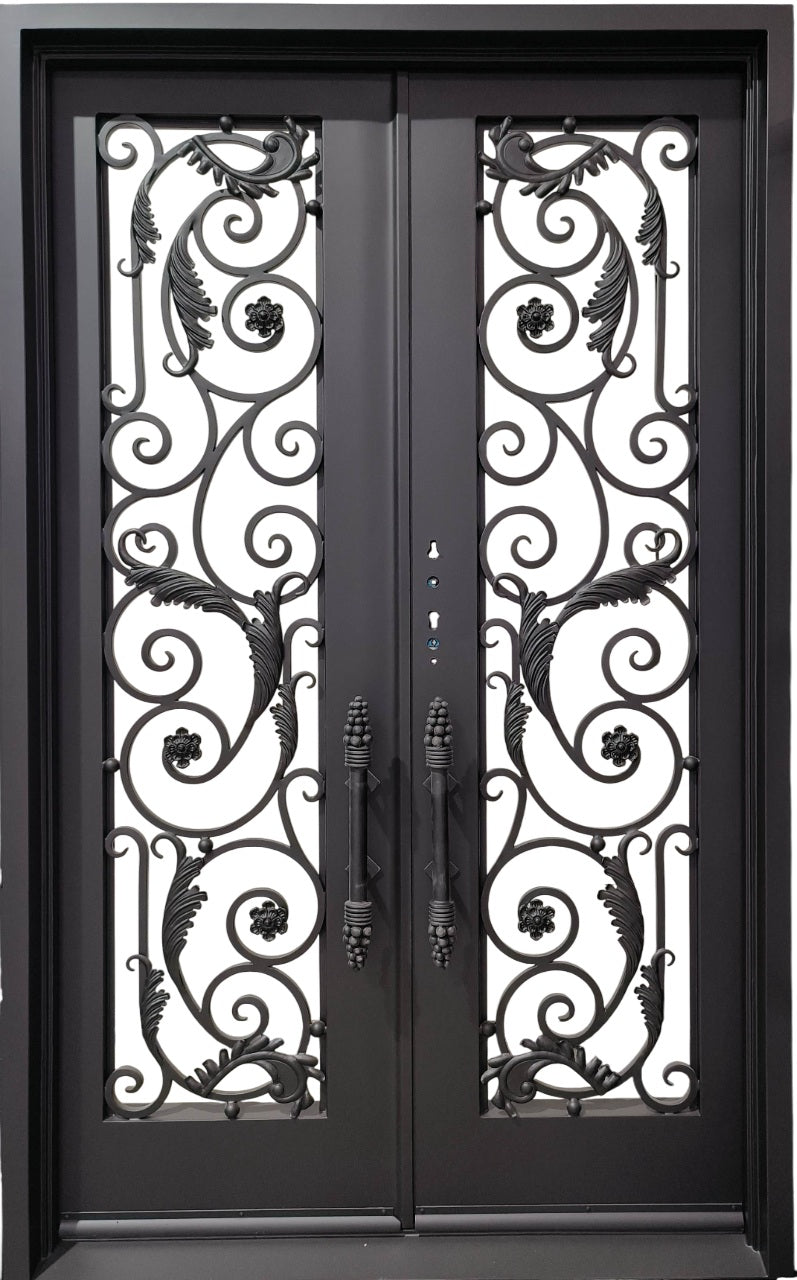 Looking for a sturdy and beautiful Main entrance for your House? Look no further than Taimco's Wrought Iron Doors! Our Doors are made of hot-dipped, powder-coated, galvanized steel to ensure they are weather and corrosion-resistant. We can customize any shape, design, or size to fit your needs. A large selection of colours is available to better match your home's aesthetic. Please contact us directly with your colour preferences so we can find the perfect match for you!