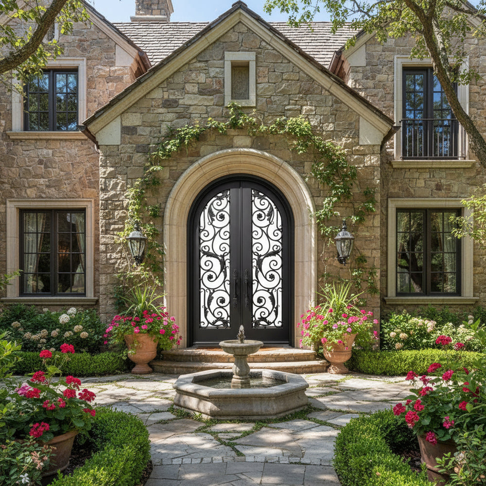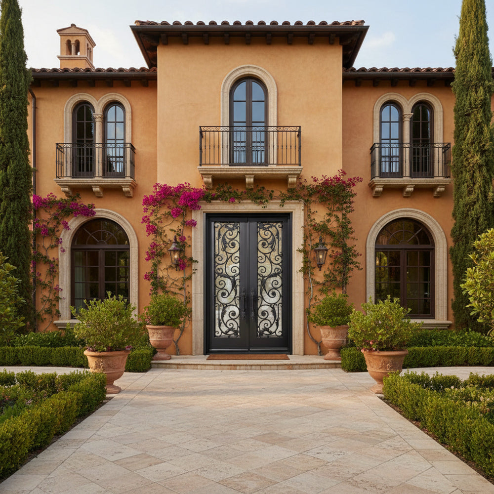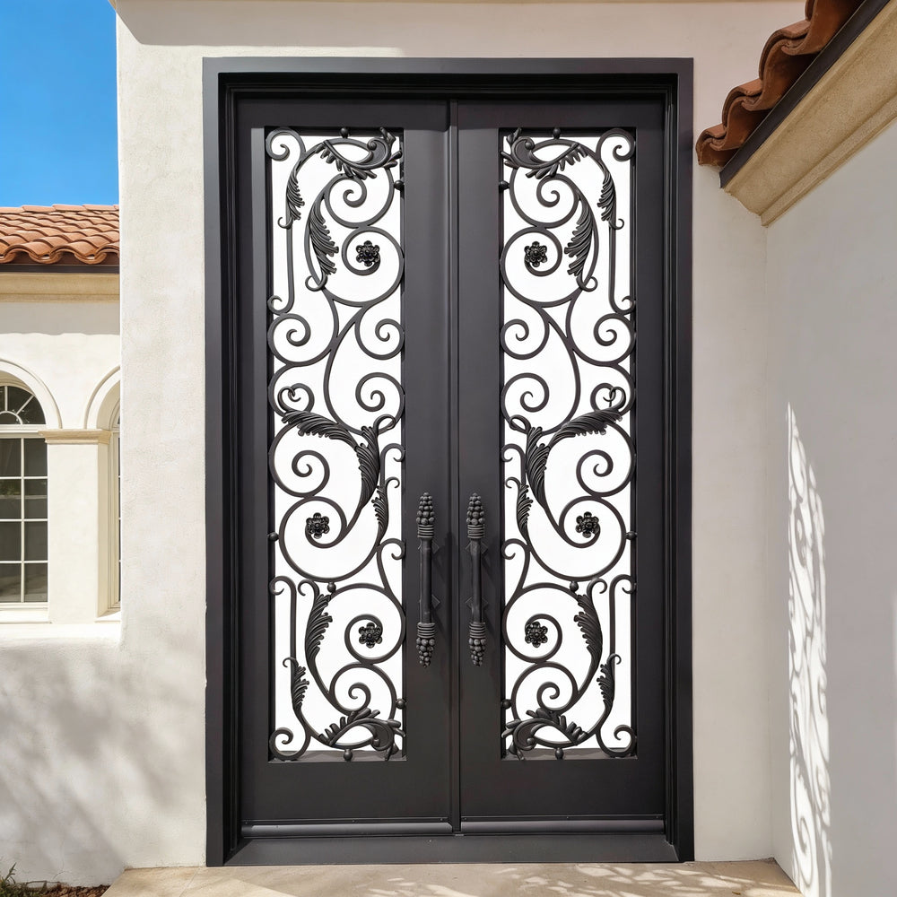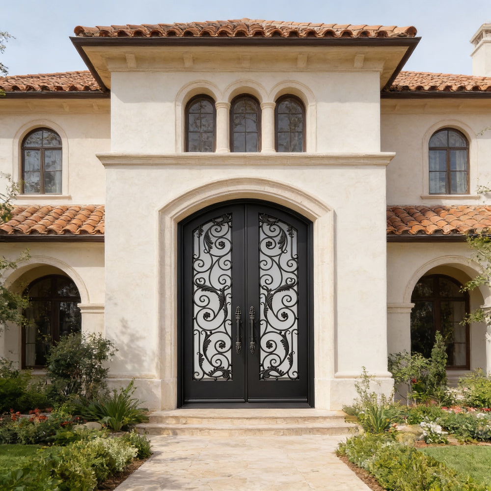 Looking for a sturdy and beautiful Main entrance for your House? Look no further than Taimco's Wrought Iron Doors! Our Doors are made of hot-dipped, powder-coated, galvanized steel to ensure they are weather and corrosion-resistant. We can customize any shape, design, or size to fit your needs. A large selection of colors is available to better match your home's aesthetic. Please contact us directly with your color preferences so we can find the perfect match for you!