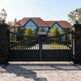 arched wrought iron gate, solid panel driveway gate, brick pillar entrance gate, Canadian custom gate, Taimco architectural gate, lantern-framed estate gate, heavy-duty minimalist gate, modern classic gate design