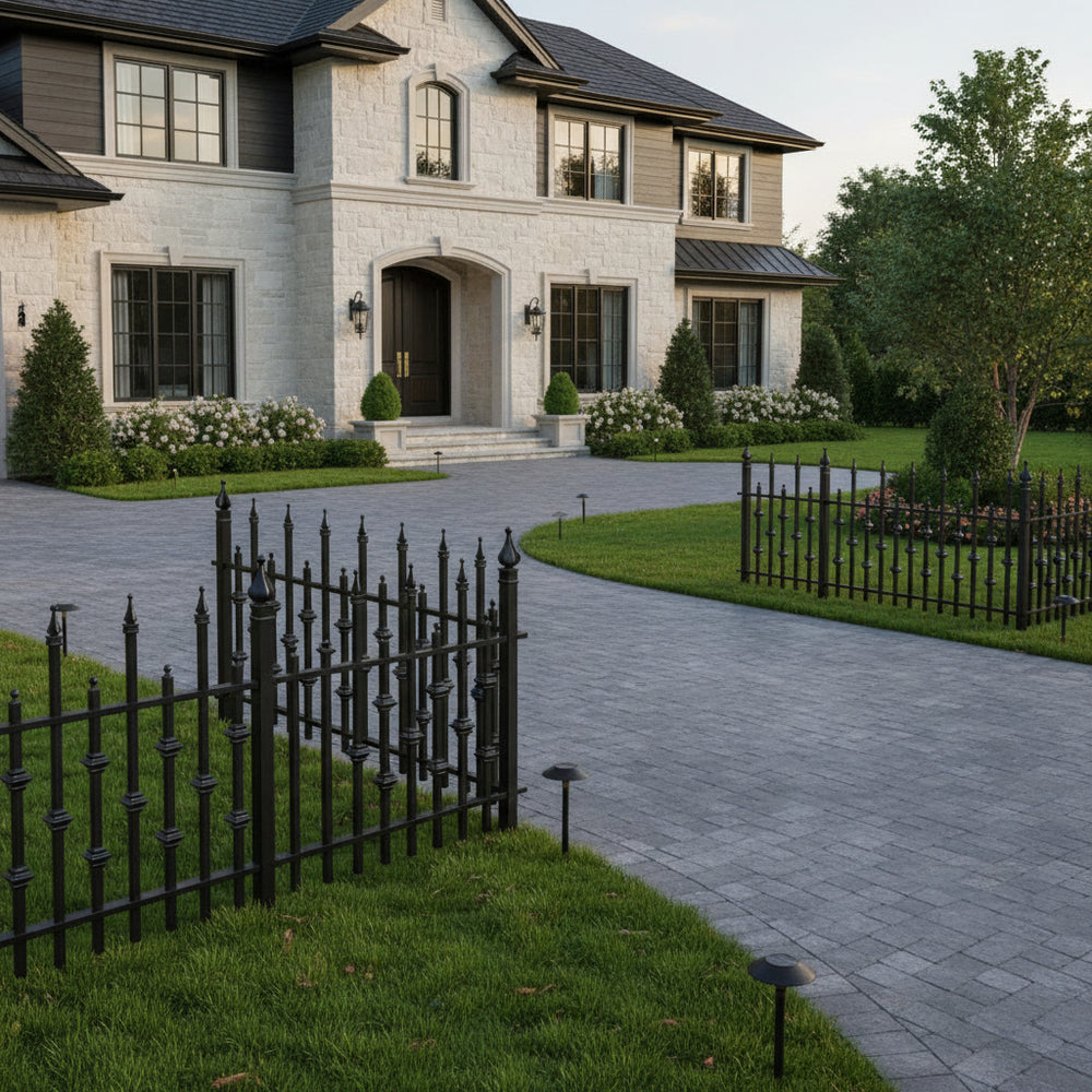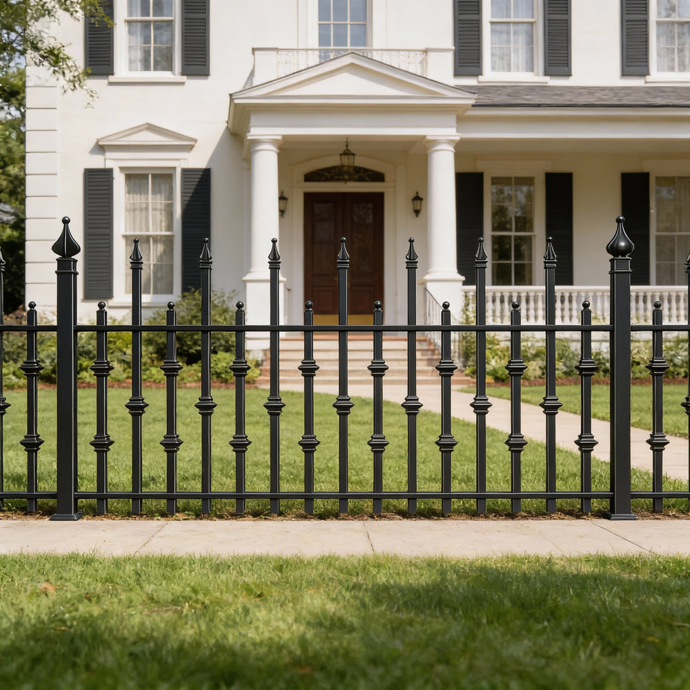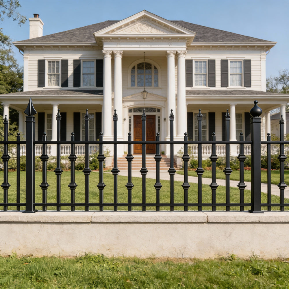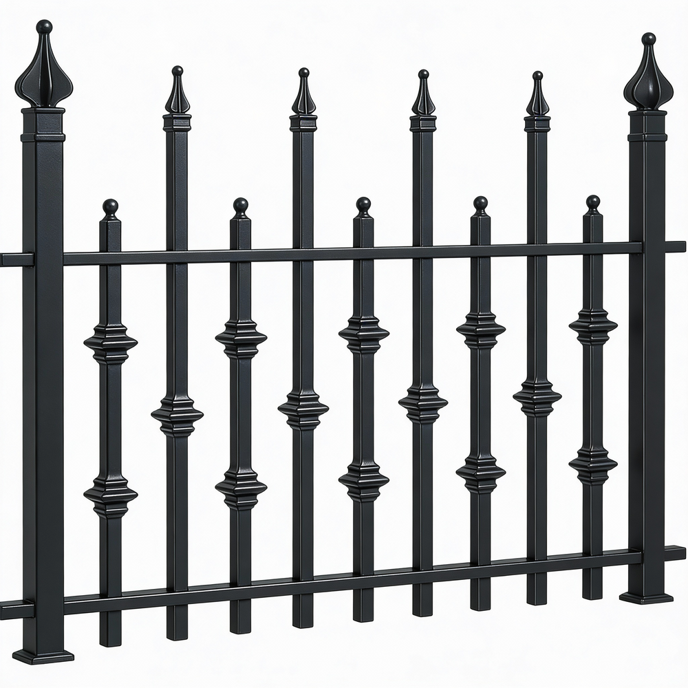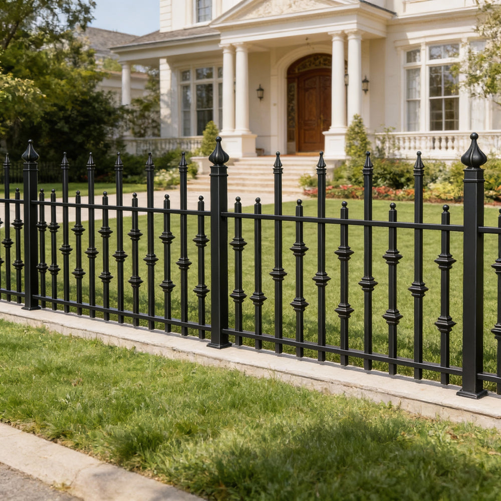 Ornamental steel fence, Taimco OFP929, Wrought iron fence, Heavy-duty metal fence, Decorative fence panel, Durable fence, Elegant fence design, Zinc-plated fence, Gloss black powder coat finish, Hidden fasteners, Easy installation, Residential fence, Commercial fence