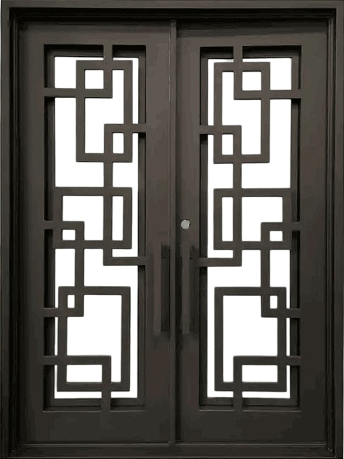- What comes inside the Box is an iron Doors Door, Double Pan Glass, Frame, roller catch, door sweep, mounting tabs, threshold, Door handles and locksets, weatherstrip,