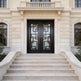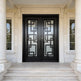 Model IWD971 presents a Vatican-inspired wrought iron entryway with a square-top frame and decorative kickplate base. Featuring operable double-pane glass inserts, powder-coated finishing, and high-density insulation, this door offers timeless elegance with modern performance. Ideal for classic home styles and custom designs, it’s fully customizable and crafted to enhance curb appeal and energy efficiency