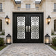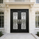 Model IWD966 is a square-top Vatican-style wrought iron door featuring vertically stacked scroll panels and a decorative kickplate base. Designed for strength, elegance, and seasonal performance, this handcrafted entryway offers double-pane glass inserts, foam-insulated jambs, and a weather-protective finish. Perfect for custom renovations, upscale homes, or traditional façades seeking refined curb appeal with customizable options
