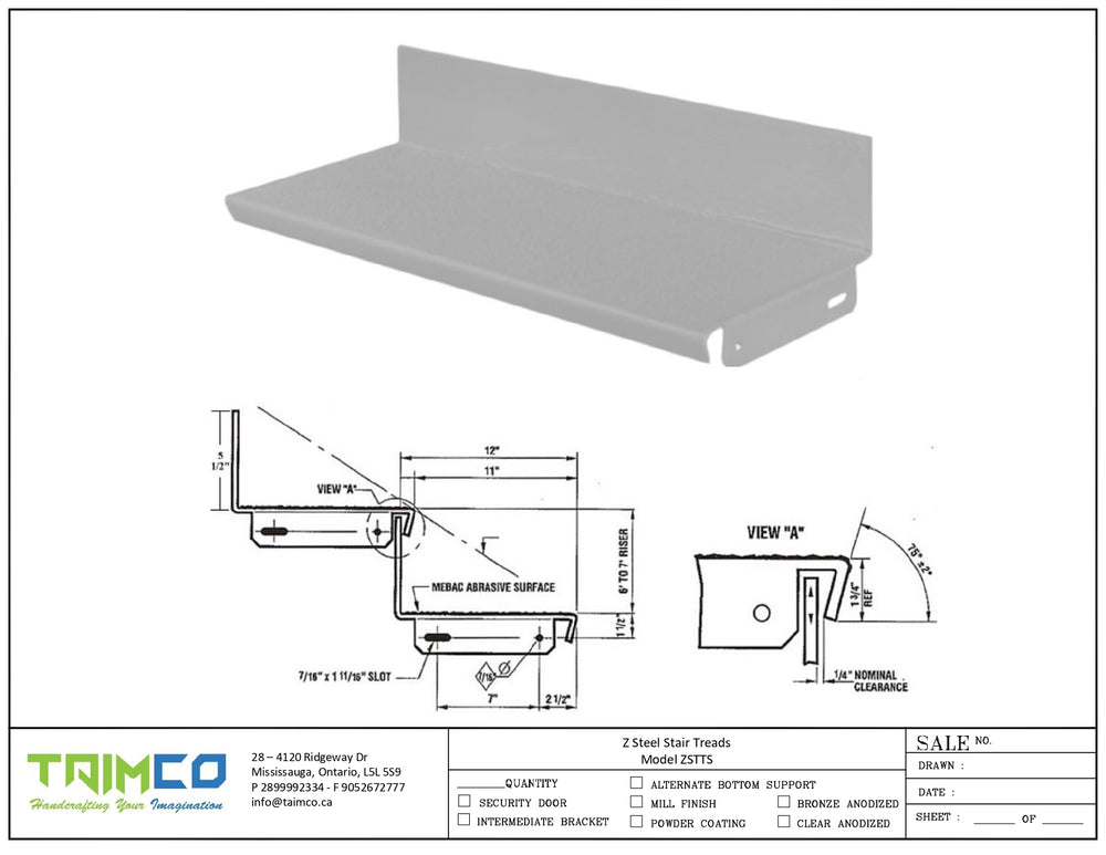 The TAIMCO Surfaced Steel Z-Treads (Model ZSTTS) is an innovative staircase system crafted from a single piece of 3/16” carbon steel plate. This unique design incorporates 6”-7” risers, treads, and stringer attachment brackets—all seamlessly formed without welds. Designed for durability and convenience, the ZSTTS provides a quick and cost-effective solution for constructing steel staircases with an integrated long-term slip-resistant surface. This ensures outstanding safety and reliability, with a superior coefficient of friction under both wet and dry conditions.